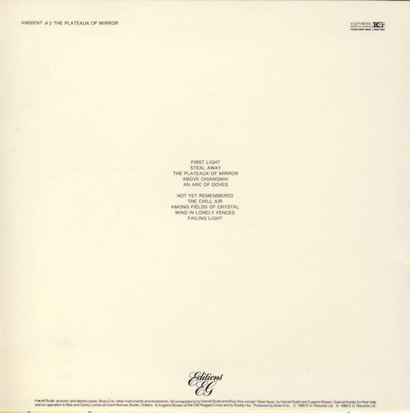 Harold Budd Brian Eno - Ambient 2 The Plateaux Of Mirror Japan
