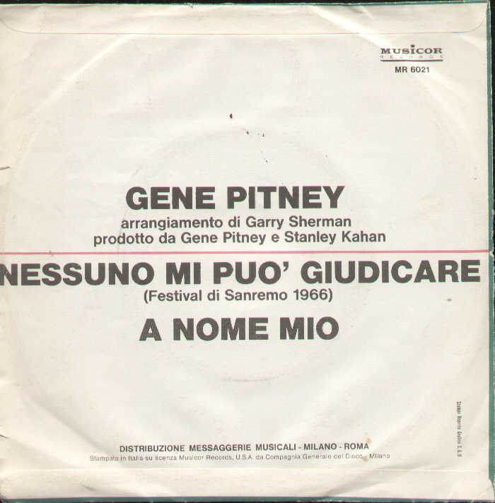 Gene Pitney - Nessuno Mi Può Giudicare / A Nome Mio