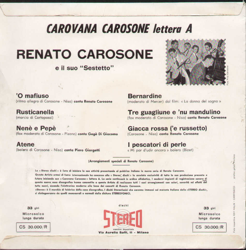 Renato Carosone E Il Suo Sestetto - Carovana Carosone Lettera A