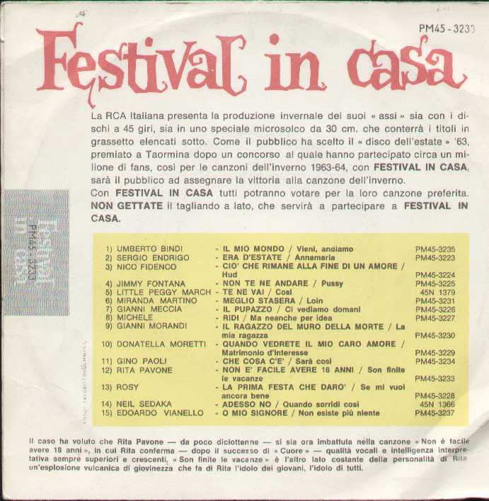 Rita Pavon - Son Finite Le Vacanze / Non È Facile Avere 18
