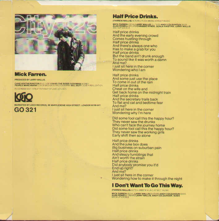 Mick Farren - Half Price Drinks / I Don't Want To Go This Way