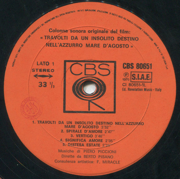 Piero Piccioni - Travolti Da Un Insolito Destino Nell'azzurro Mare D'agosto