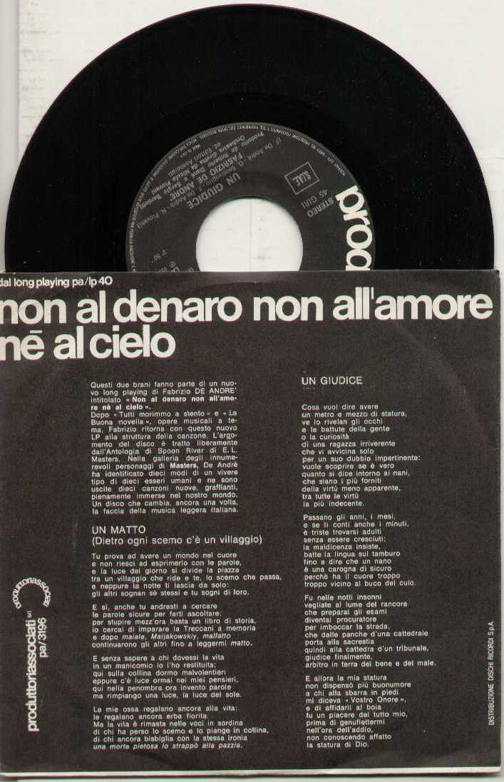 Fabrizio De Andrè - Un Matto / Un Giudice