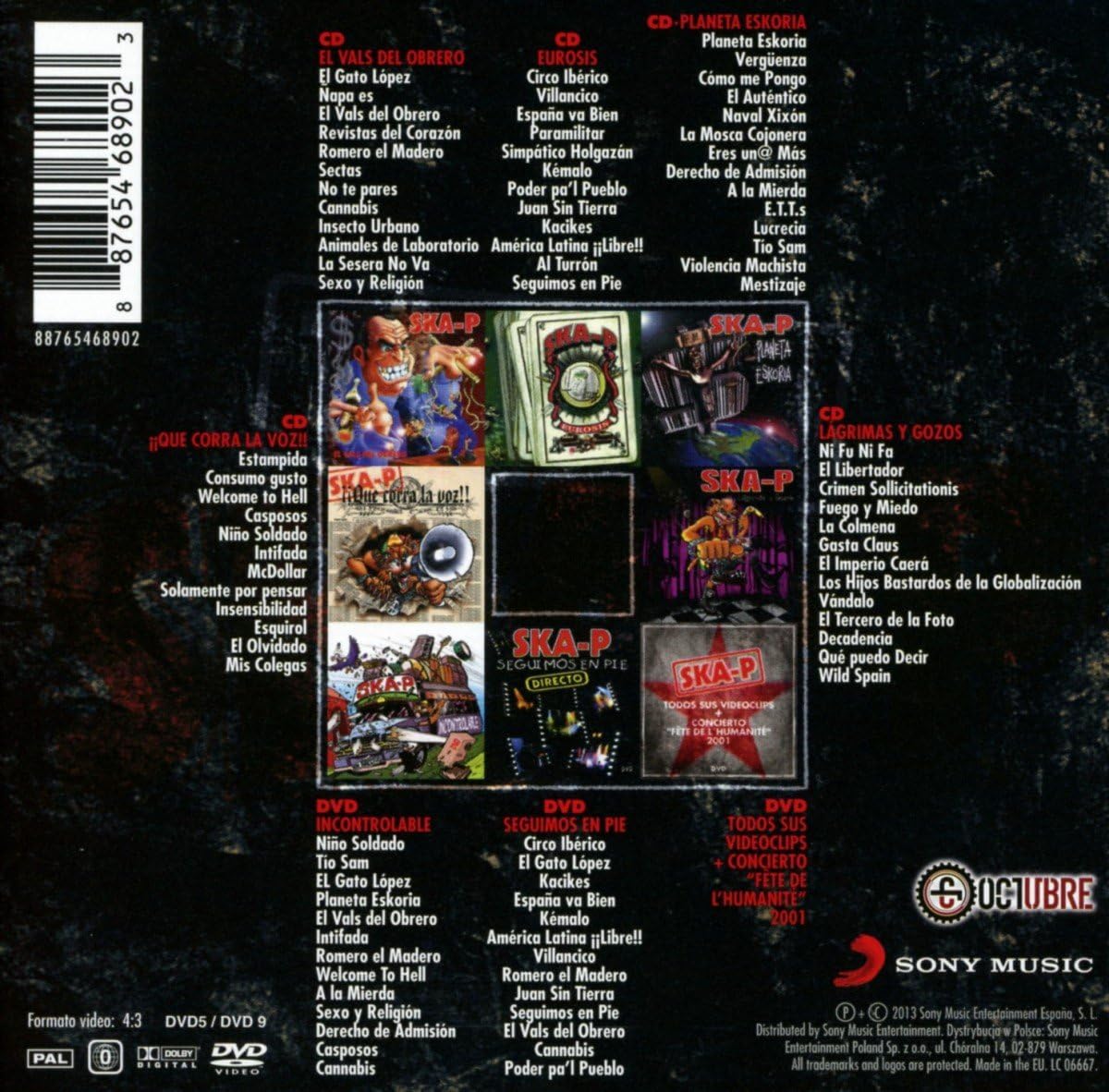 Incluye: 5 CDs y 3 DVDs con toda su discografía. todos sus videoclips y un concierto inédito grabado en Francia en 2001